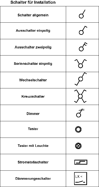 Installationsplan Elektro Symbole Schaltzeichen Planungstipps Mit den Symbolen werden Bauelemente, Bauteile, Ger teteile, Ger te und Leitungen dargestellt. Daran ist abzulesen, welcher Schalter zu welchem Licht geh rt und zu welchem Stromkreis ein Ger t angeschlossen.
